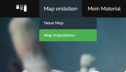 Um einen Import durchzuführen, der eine neue Map erzeugt, klicken Sie oben im Hauptmenü auf „Map erstellen“ und wählen im Dropdown „Map importieren“.