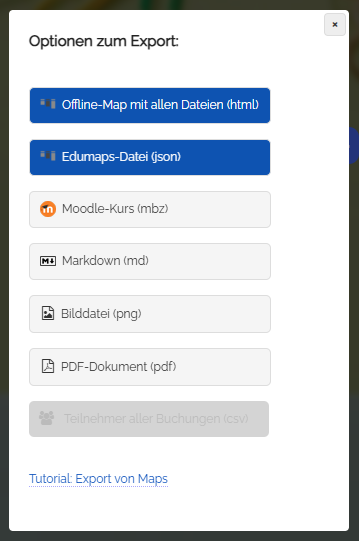 Mit der Export-Option „Offline-Map mit allen Dateien (html)“ können Sie Ihre Map vollständig herunterladen und offline bereitstellen.