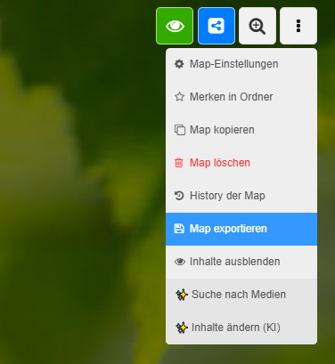 Klicken Sie hierzu im Bearbeitungsmodus rechts oben auf die drei Punkte und wählen „Map exportieren“.