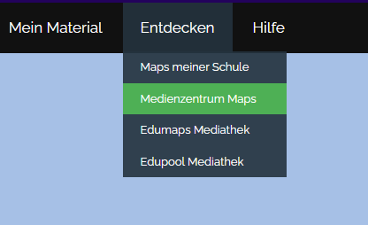Jede Schule, die Ihrem Medienzentrum zugeordnet ist, findet im Hauptmenü den Punkt „Medienzentrum Maps“: