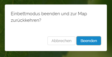 Wollen Sie den Einbettmodus abbrechen, so können Sie links oben auf den roten Banner „Einbettmodus“ klicken. Dies beendet den Einbettmodus und Sie kehren zu Ihrer Map zurück
