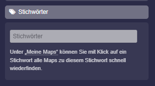 Unter „Stichwörter“ können Sie Ihrer Map Stichwörter vergeben. Diese Stichwörter helfen Ihnen, Ihre Maps schnell zu filtern.