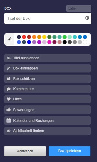 Sie können jeden Boxtitel einfärben. Dazu stehen definierte Farben bereit.