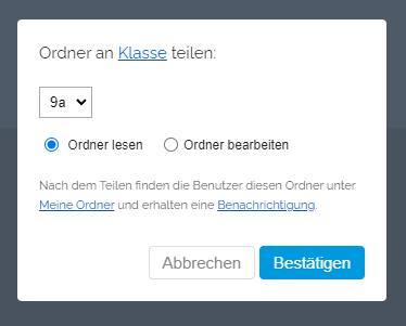 Wenn Sie an eine Klasse teilen möchten, so öffnet sich dieser Dialog: