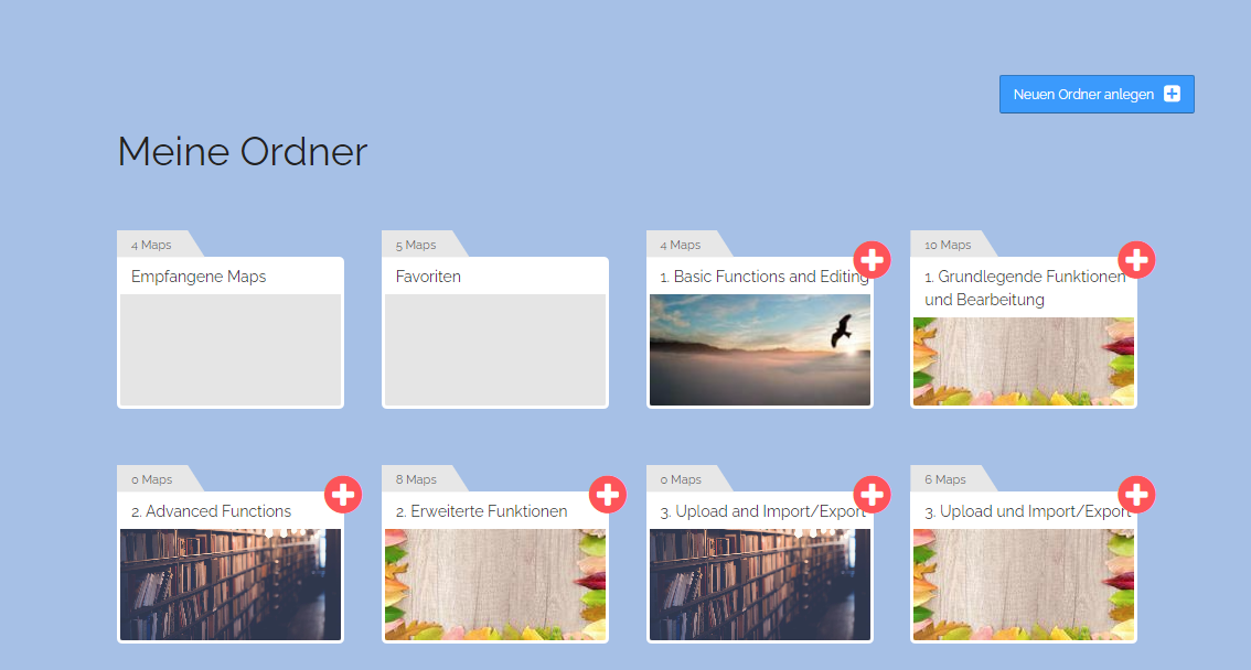 In jedem Ordner finden Sie neben dem Button „Map hinzufügen“ den Button „Ordner hinzufügen“.