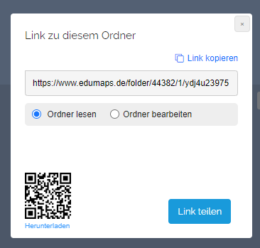 Mit Klick auf „Link zum Ordner“ öffnet sich der Teilen-Dialog.