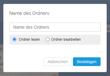Tragen Sie den Namen ein und bestätigen Sie. Der Ordner erscheint danach sofort in Ihrem Ordner. Er wird mit Bearbeitungsrechten hinterlegt.