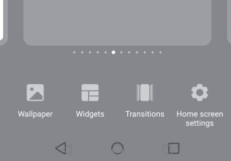 1. Haten Sie den Homescreen mit einem Finger gedrückt, bis die Auswahl "Wallpaper | Widget | Transitions | Home screen settings" erscheint.
