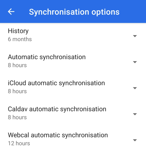 Wählen Sie zum Beispiel „2 hours“ oder „4 hours“ als Synchronisations-Intervall: