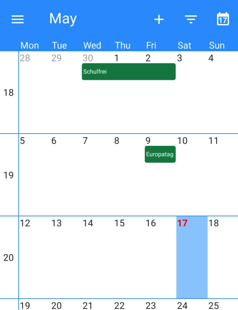 Wenn Sie nun die App öffnen, werden Ihnen alle importieren Events vom Edumaps-Kalender angezeigt: