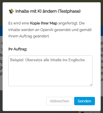 Hierbei wird eine Kopie der aktuellen Map erzeugt und von der KI gemäß Ihrem Auftrag verarbeitet.