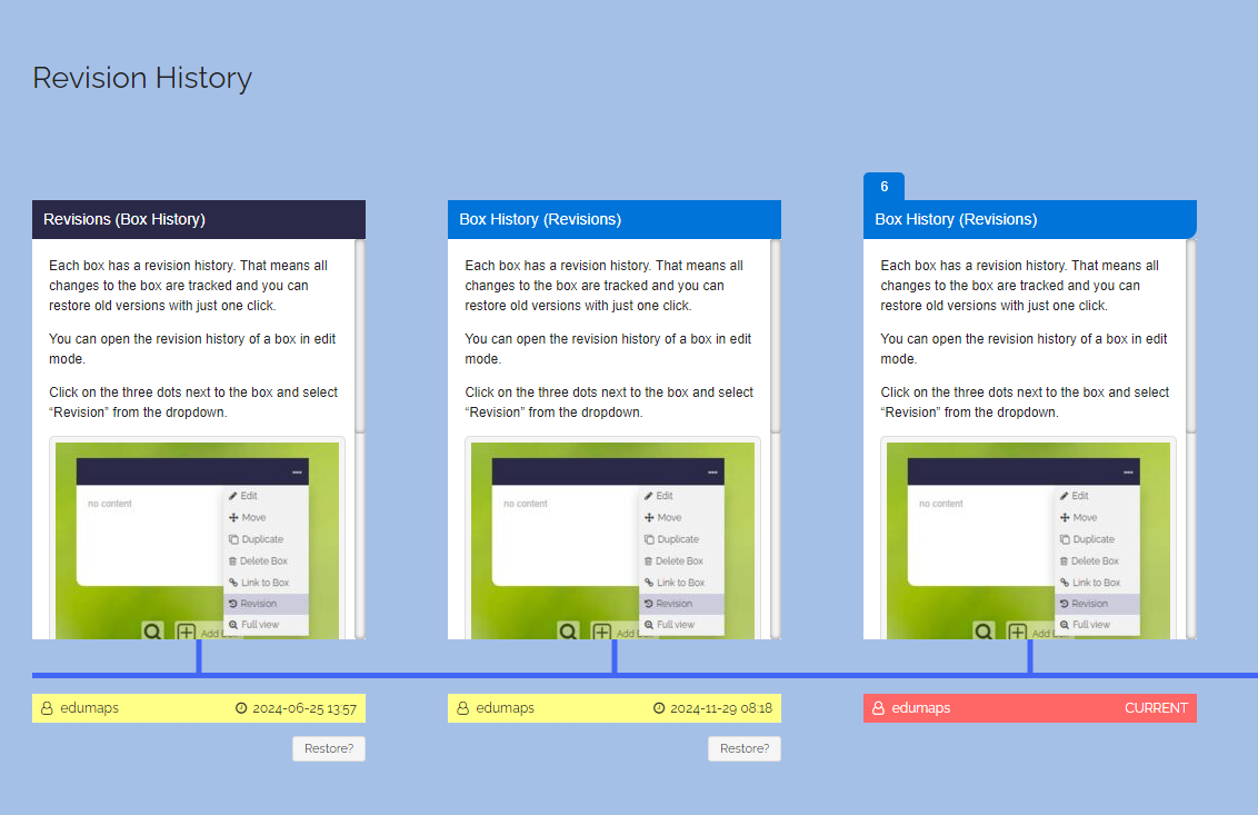 Then you can see the different versions of the box over time. These are displayed in a timeline.