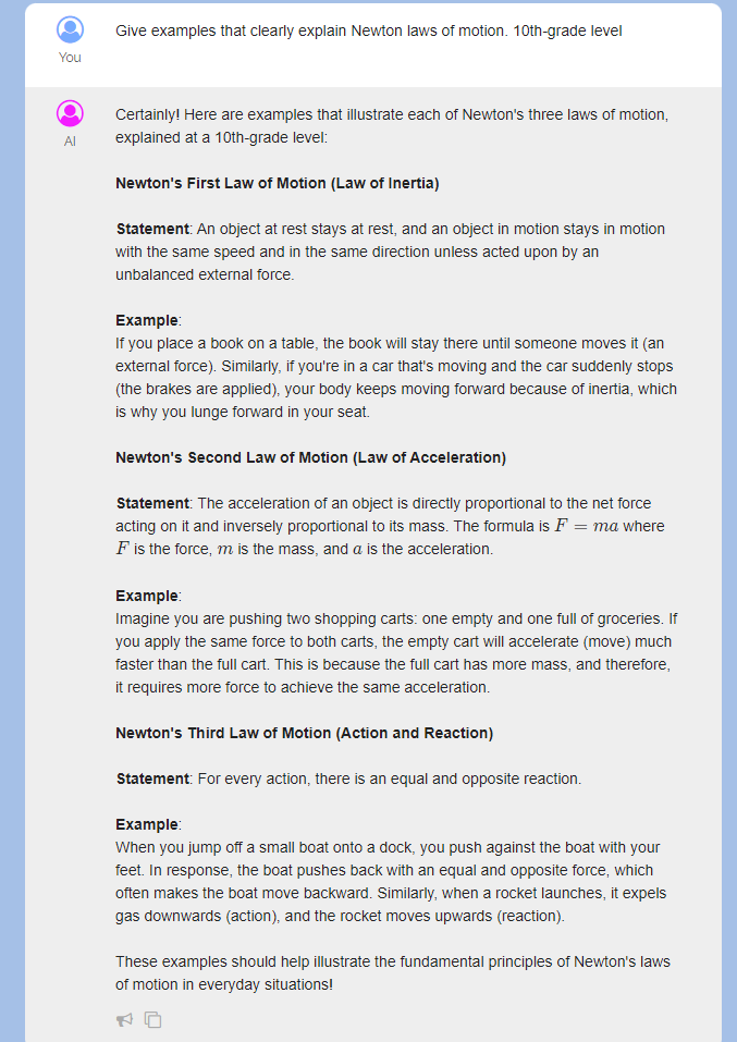 Give examples that clearly explain Newton's laws of motion. 10th-grade level.-
