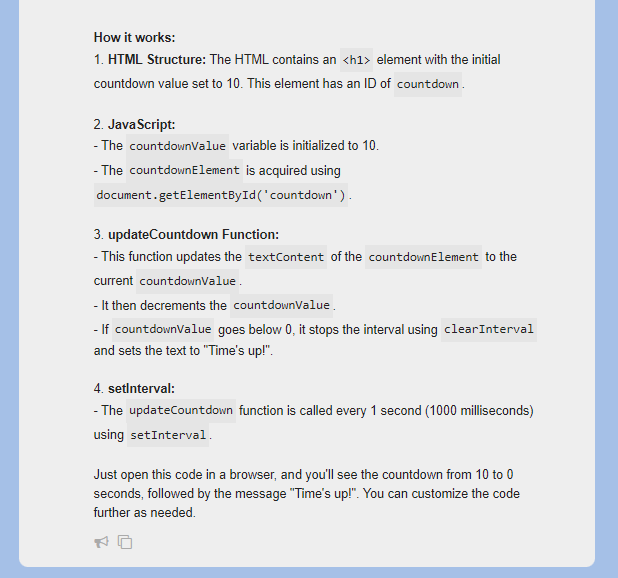 Now the students could try out the source code themselves and find any errors - or make changes, for example a countdown with a longer time span.