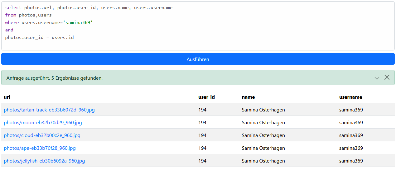 Für das Beispiel kann folgende SQL-Anweisung genutzt werden: