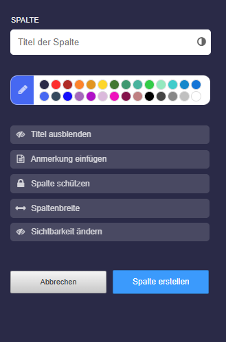 - In den Spalten-Einstellungen geben Sie der Spalte einen Titel. Außerdem können Sie verschiedene Optionen festlegen.