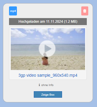 Mit Klick auf den blauen Button „Zeige Box“ wird die Map geöffnet, wo der Upload stattfand. Auch wird die Box automatisch in den Fokus gebracht.
